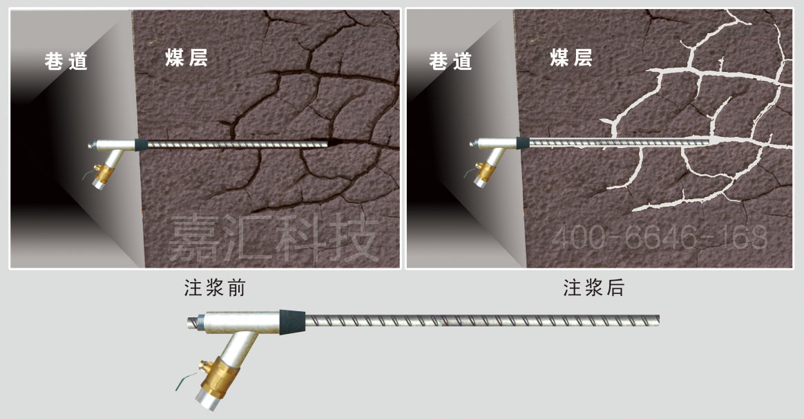 在現有的錨桿封孔中用錨固劑來加固錨桿,錨桿耐拉力小,加固不牢,周邊裂隙進不去沙漿不能加固。用空心錨桿注沙漿可達到加固作用,但空心錨桿價格高,拉力不如螺紋鋼。